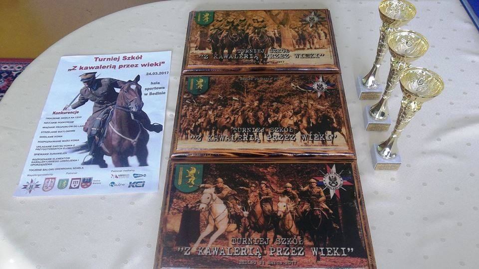 24 marca odbył się w hali sportowej w Bedlnie Turniej Szkół "Z kawalerią przez wieki". Impreza została zorganizowana przez Marka Drabika i Polski Klub Kawaleryjski. Mieliśmy zaszczyt przygotować nagrody główne dla zwycięzców. Oczywiście nagrodami były wykonane w naszym warsztacie fotografie na drewnie. Projekt wykonałem we własnym zakresie. Format klejonki sosnowej A3. Całość zabezpieczona żywicą.